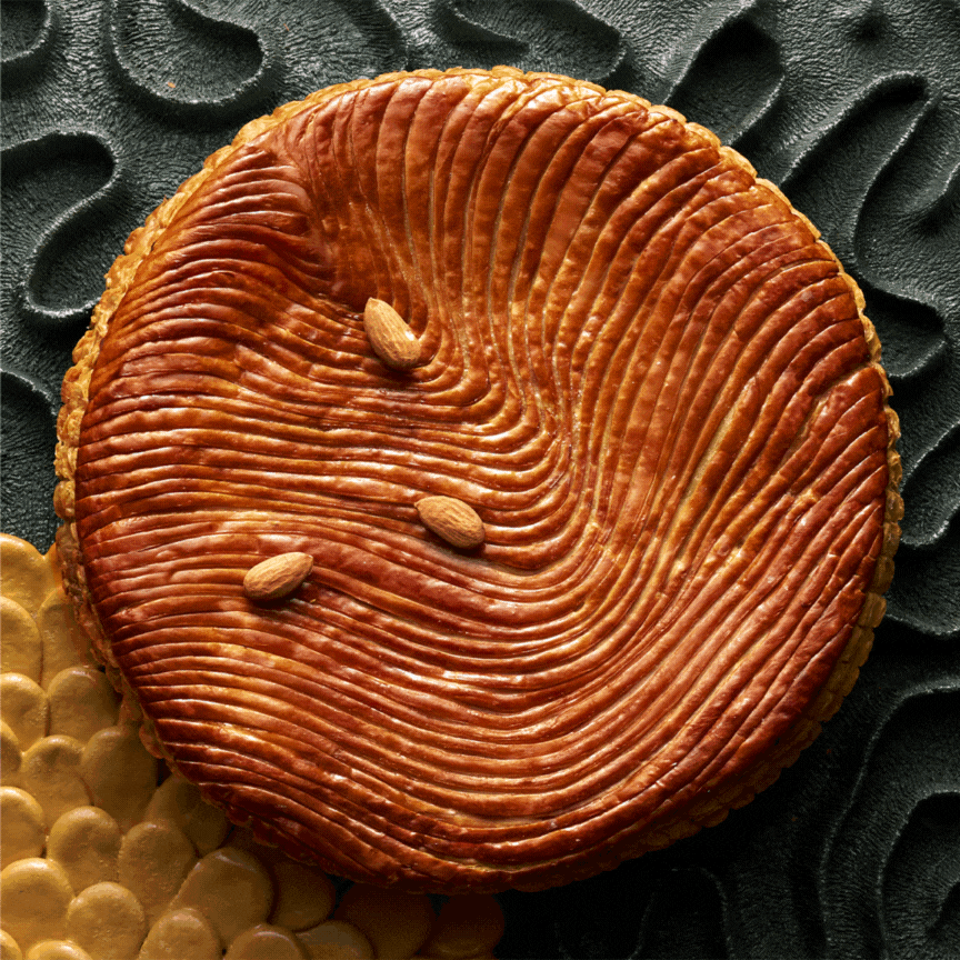 Création emblématique de l’Épiphanie, la galette Infiniment Amande de Pierre Hermé sublime l’amande dans toute sa richesse. Une crème d’amande généreuse, relevée d’amandes finement torréfiées, est enveloppée d’un feuilletage délicatement doré et croustillant.
